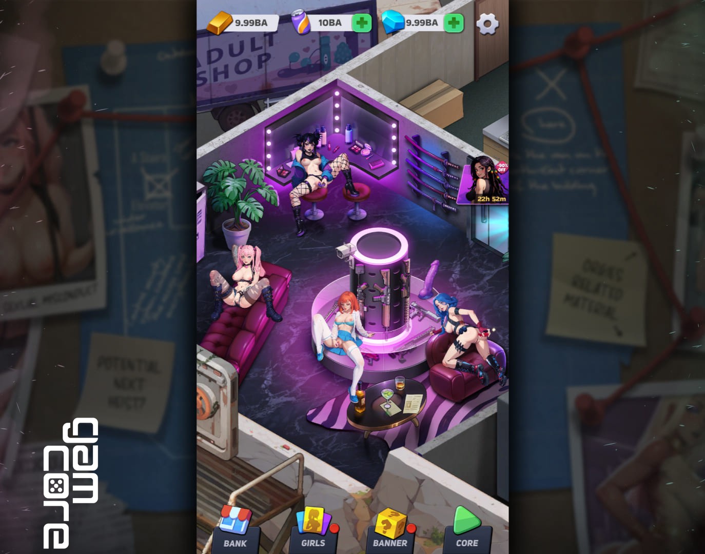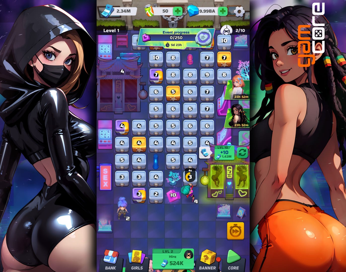 Beschrijving: Welcome to Slut Squad — an NSFW Idle-Merge game where you assemble the ultimate crew of bombshell thieves! Recruit, merge, and level up your squad, build the perfect crime fortress, and turn every heist into a filthy, high-stakes pleasure spree. Your mission? Assemble a crew of elite criminals, rob banks, and turn your hideout into an impenetrable fortress of pleasure!